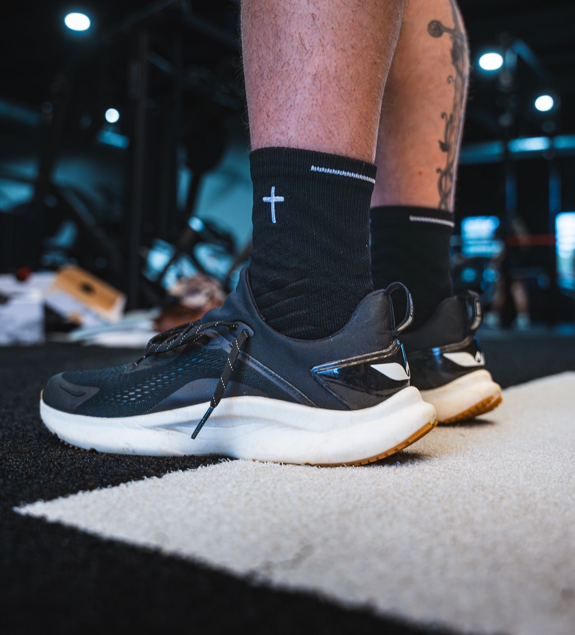 The Black Cross Sock is a high-performance sock designed for the active individual. Crafted with an embroidered cross on the ankle.